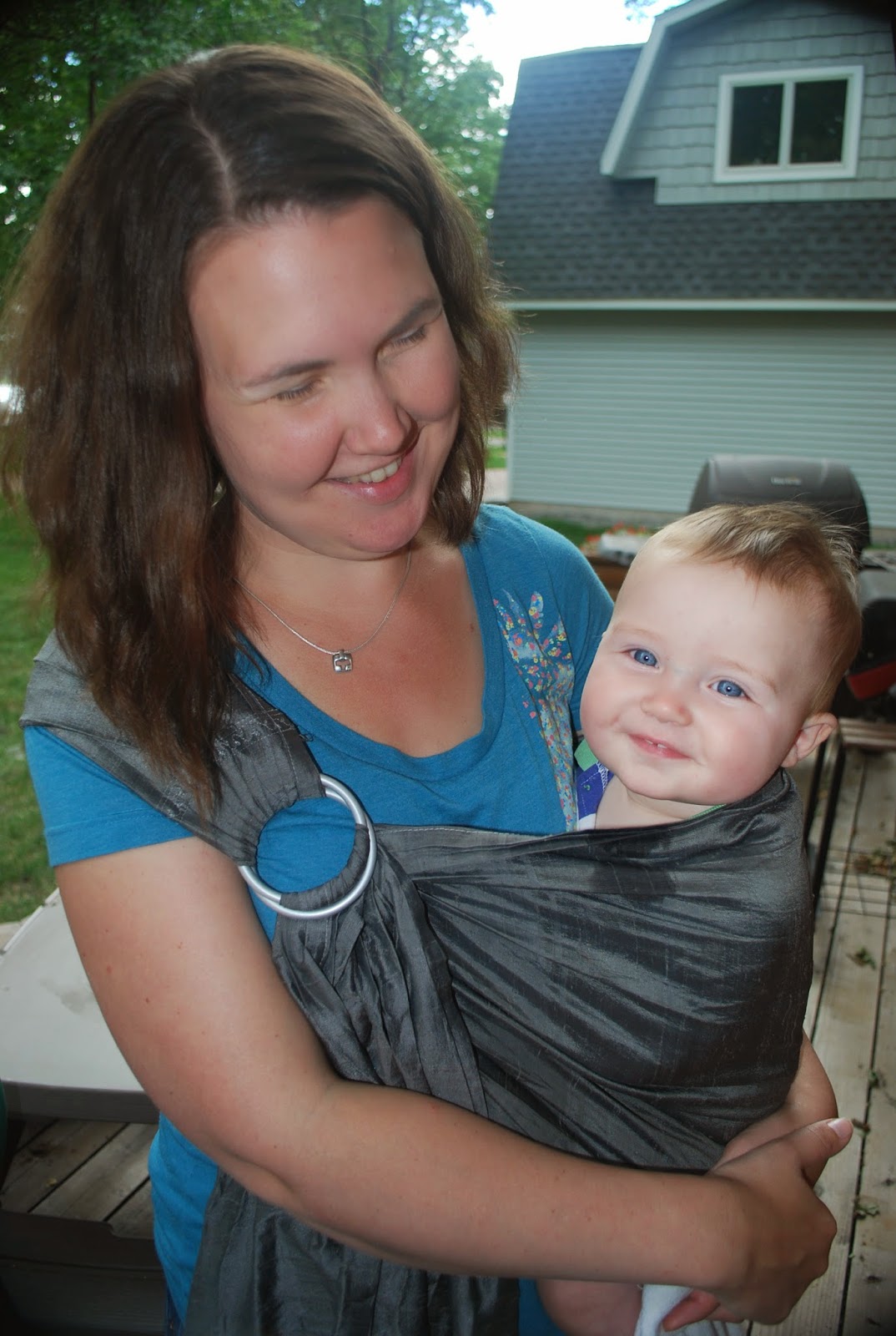 Expert tip: Adjust the sling by pulling on the tail. If baby’s head is flopping, pull on just one side of the tail to pull just the top tighter. (This is probably totally obvious to a normal person, but it only occurred to me when another LLL leader was showing a new mom how to use her ring sling. It BLEW MY MIND.)